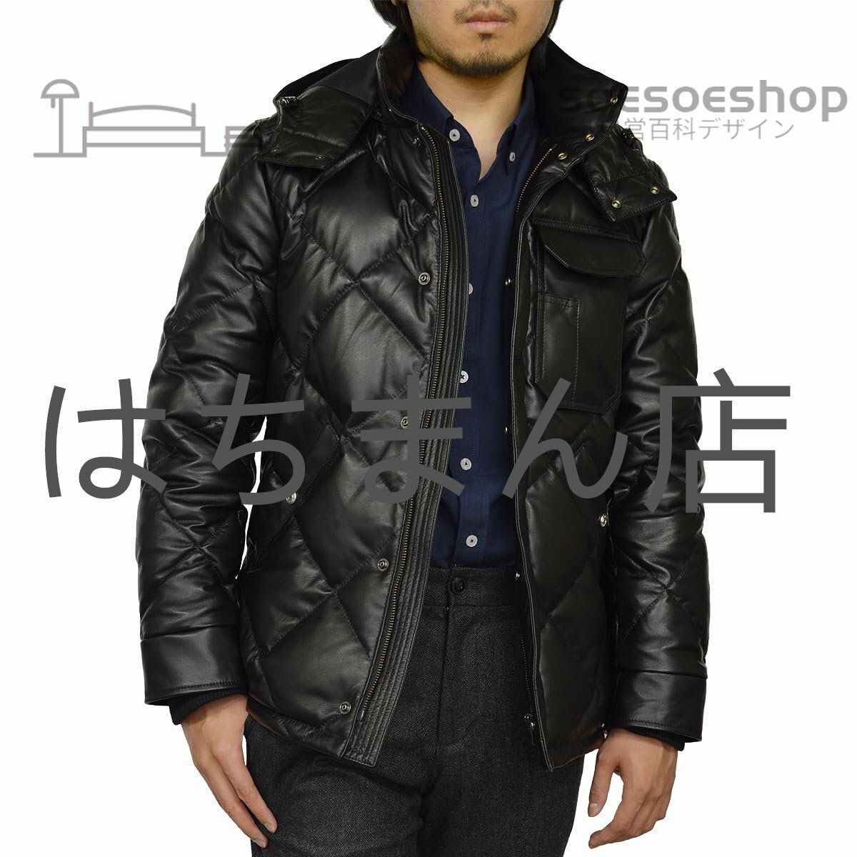 - ダウンジャケット レザージャケット メンズ 本革 レザーダウンジャケット 革ジャン 白 黒 ラムレザー ダウンコート 秋冬 ブラック M-3XL