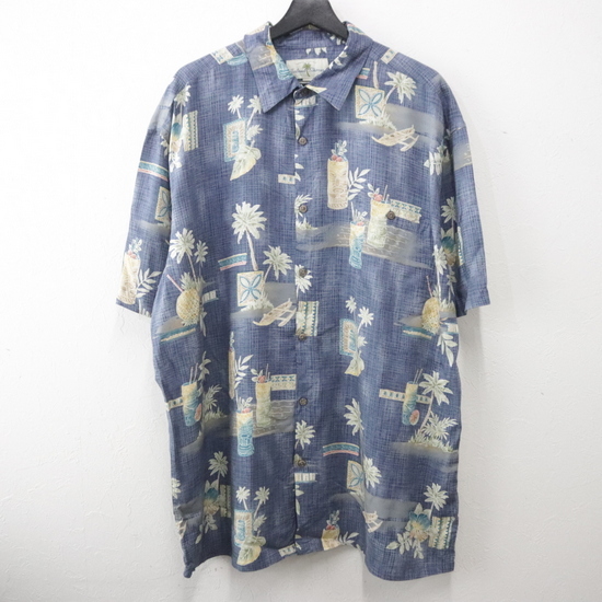 > L752 2000年代製 ISLANDSHORES レーヨン 総柄 半袖 アロハシャツ■00s 表記XLサイズ ブルー アメカジ ストリート ハワイアン 古着卸 90s