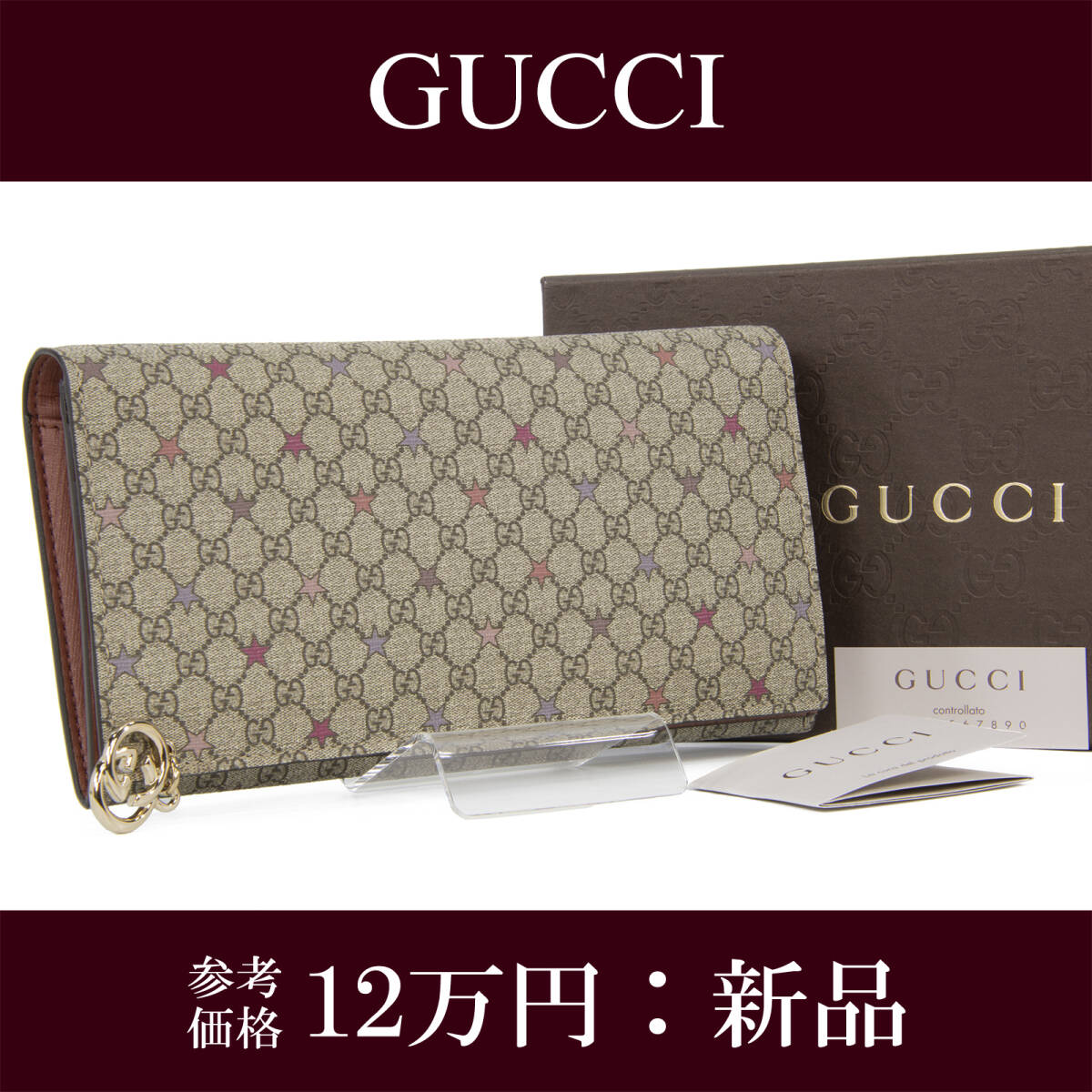 > 本物 送料無料 グッチ 長財布 二つ折り財布 新品 レディース マイクロGGスプリーム ベージュ 茶色 赤 ピンク 紫 星 レア ロゴ マーク G105