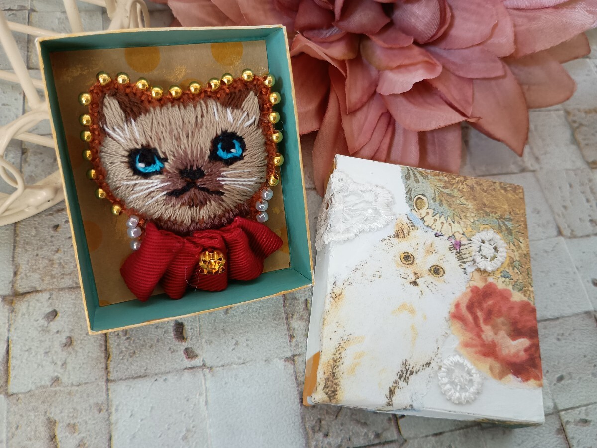 - ねこ ネコ 猫 刺繍ブローチ 手刺繍 ハンドメイド シャム猫