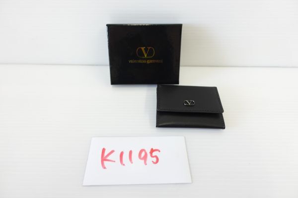 - 【k1195】VALENTINO GARAVANI 二つ折り財布 小銭入れ付 黒×灰 男女兼用 ヴァレンティノ
