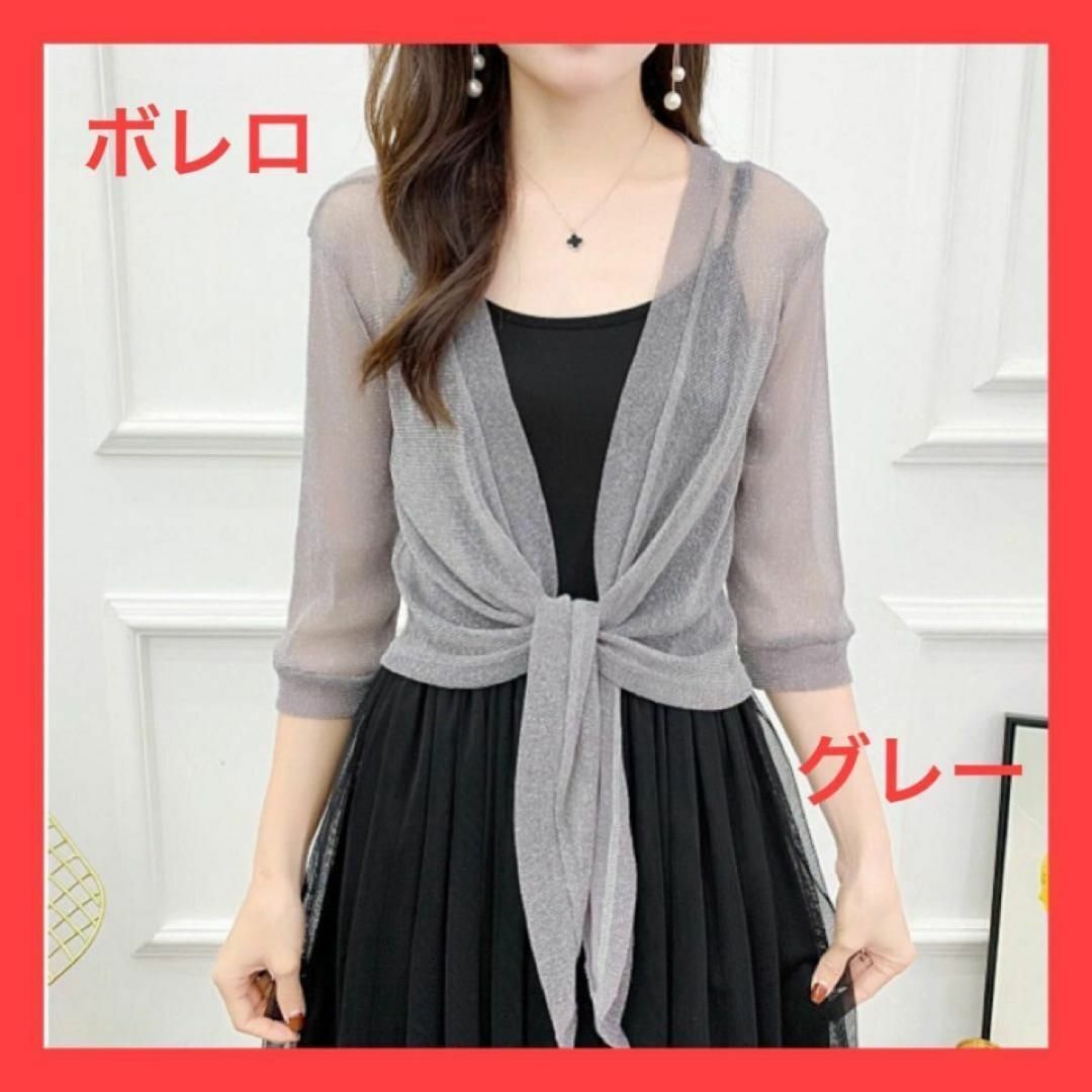 - 【グレー系】ボレロ ラメ入り カーディガン パーティ フォーマル 冷房対策