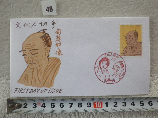 - FDC 文化人切手 関孝和 1貼1消 説明書有 松屋●48●同梱大歓迎