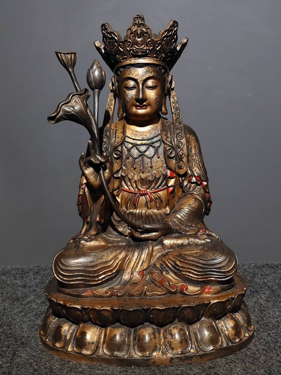 > 【超珍館蔵】銅製 泥金 華嚴菩薩像 仏像 宗教 仏教古美術 供養品 古賞物 古董品 古美術品 時代物 旧家蔵出 稀少珍蔵品