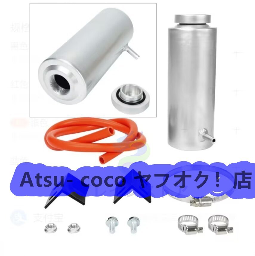 - ラジエーター リザーバー タンク 円筒型 ホース 付き シルバー ブラック ブルー 車 カスタム 汎用 ラジエター リザーブ パーツ