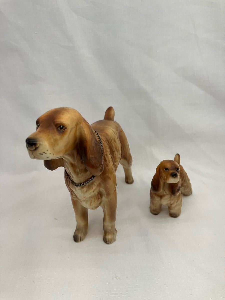 - 犬 置物 動物 親子 陶器 オブジェ 廃盤 非売品 セッター
