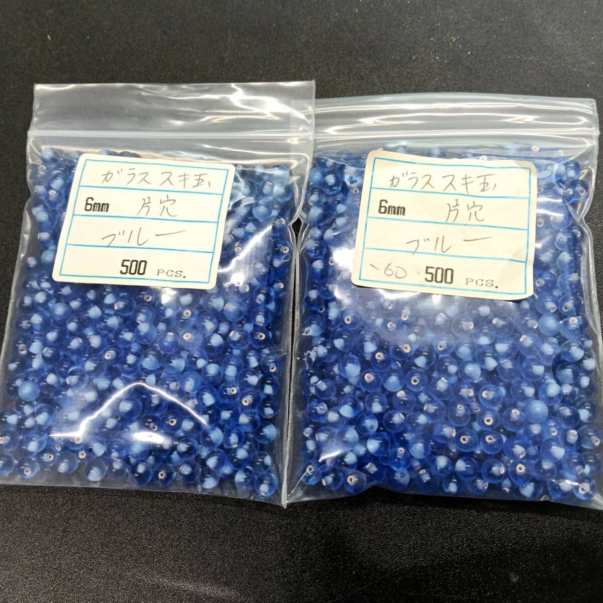 > L141☆未使用 大量 片穴 チェコ ガラスビーズ 290g 6mm ラウンド ブルー 青 大粒 ヴィンテージ 手芸 パーツ アクセサリー ネックレス S-373