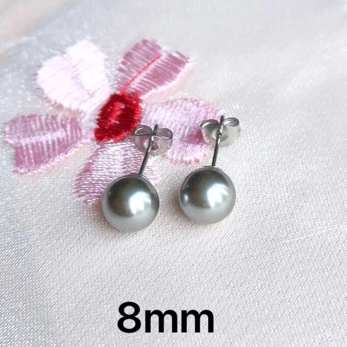 - 新品 316l サージカルステンレス パール ピアス 8mm グレー 抗アレルギー パールピアス プレゼント 真珠 模造 金属アレルギー 灰 送料無料