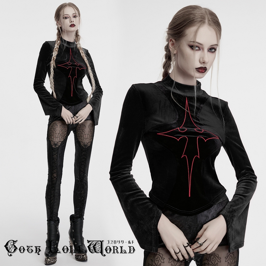 - 即納 OT-983TCF-BK-XS-S ゴシックファッション ベルベッド カットソー ゴシック ヴィジュアル系 ライブ衣装 舞台衣装 ステージ衣装