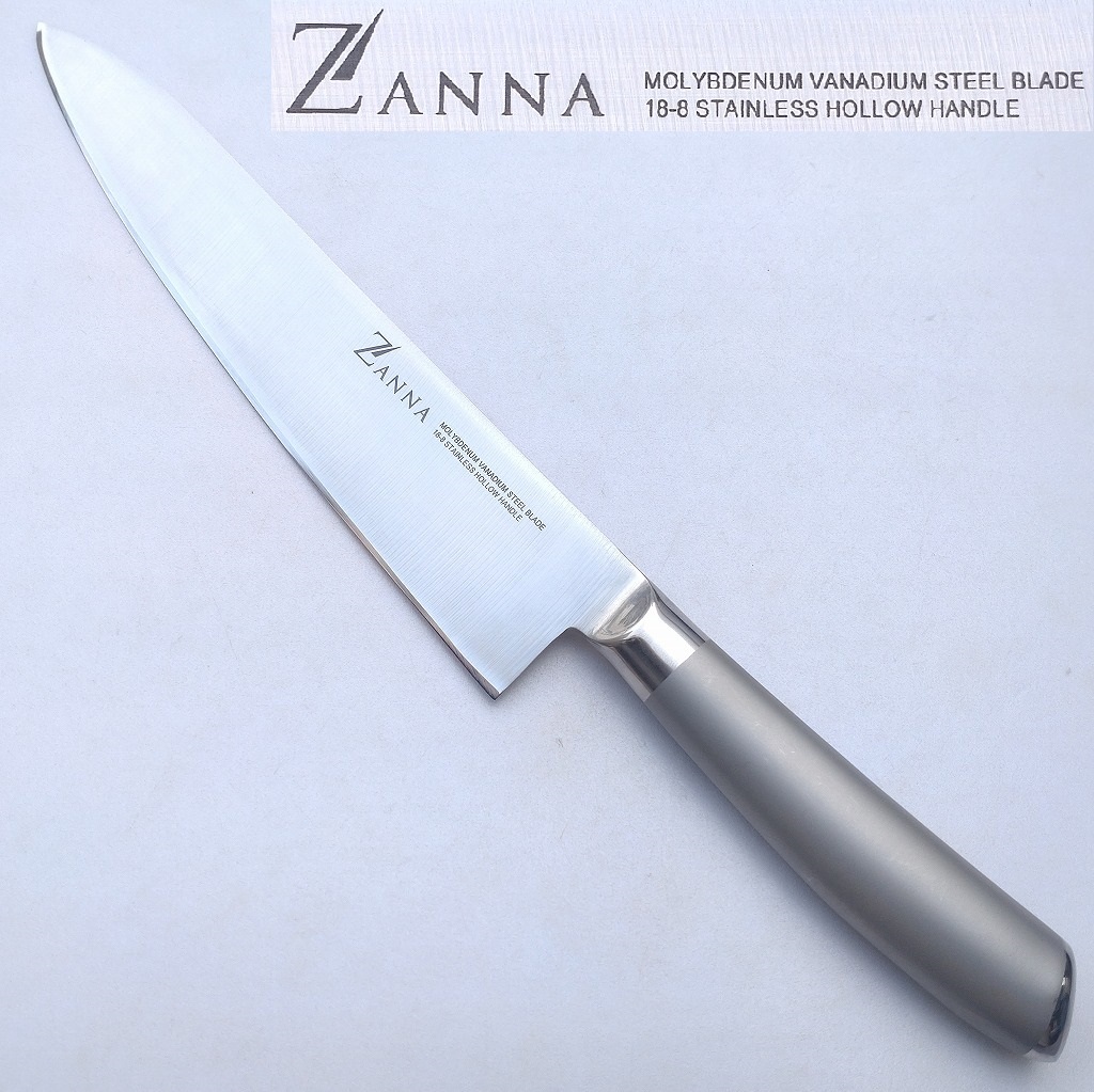 - 牛刀包丁 ZANNA ツァンナ 刃長約215㎜ 両刃 オールステンレス スライサー シェフナイフ 調理器具 刃物 未使用保管品 【4301U626】【r】