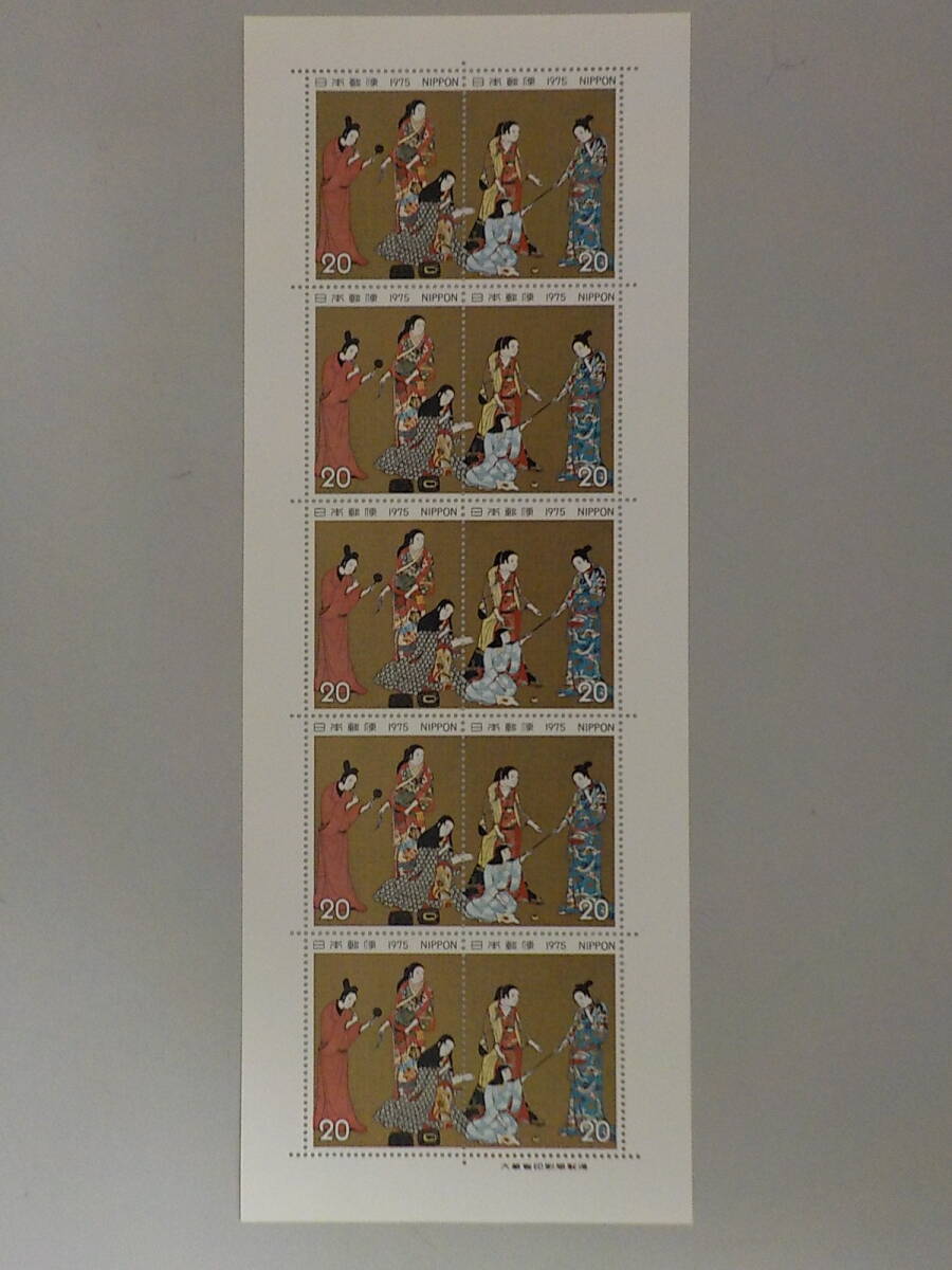 - 切手趣味週間 1975年 国宝 婦女遊楽図屏風 松浦屏風 / 20円切手シート 未使用
