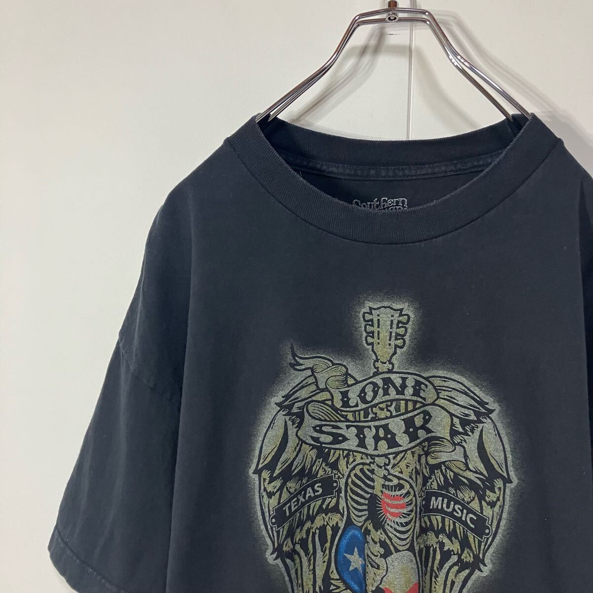 > 古着 アート プリント クルーネック 半袖 Tシャツ 大きいサイズ ヴィンテージ感 ブラック XL