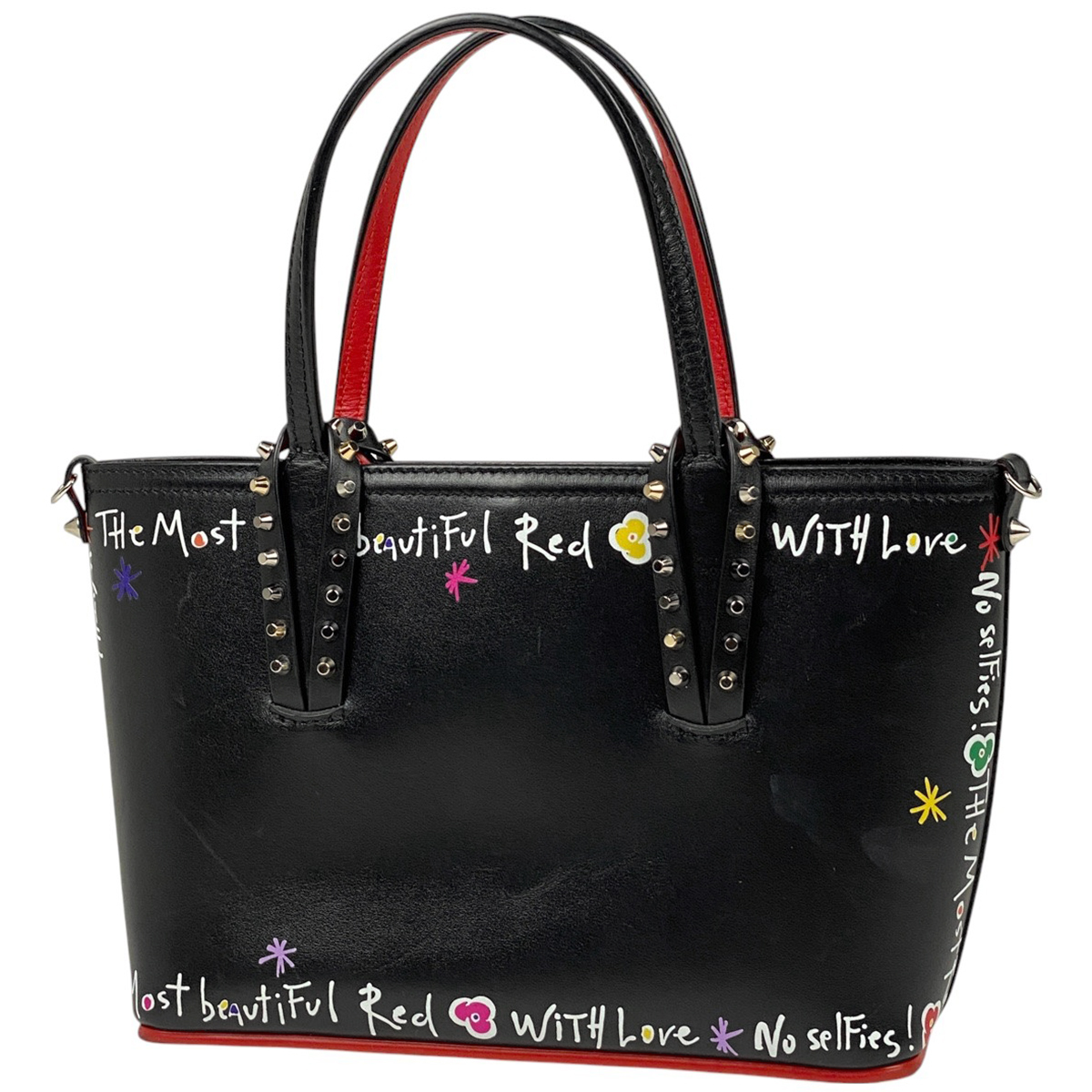 - クリスチャンルブタン Christian Louboutin カバタ ミニ トートバッグ ペイント 2WAY ショルダーバッグ レザー ブラック レッド【中古】