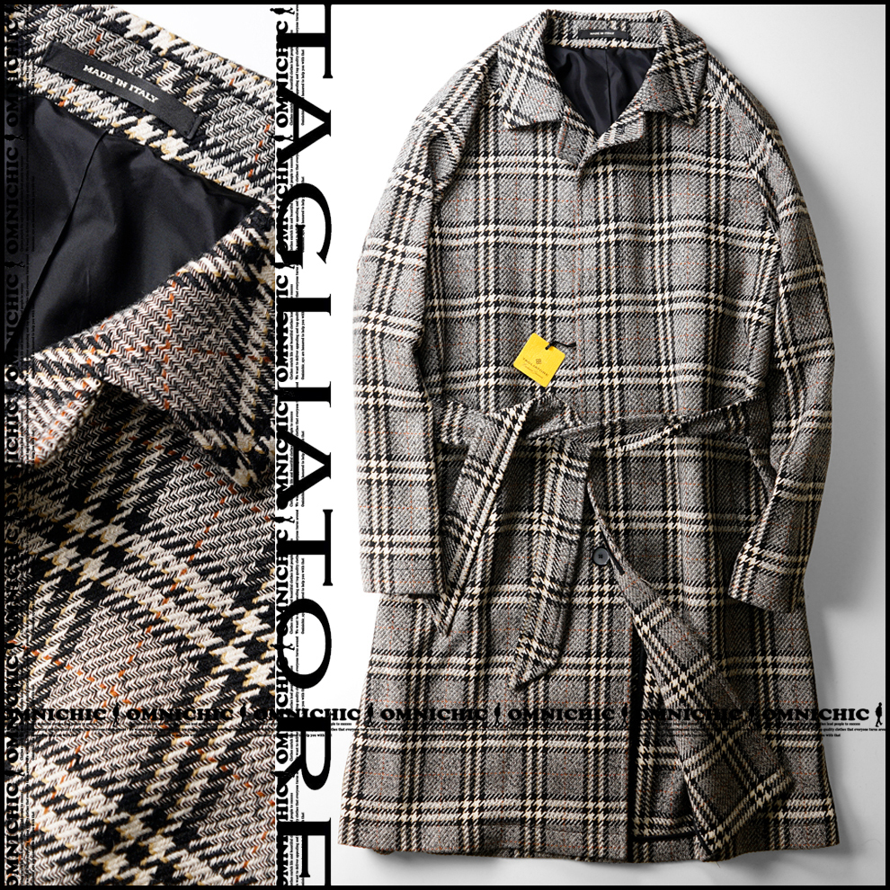 - 最高級PINO LERARIO■新品【TAGLIATORE】EXCLUSIVE GARMENT/タリアトーレ/SALOMON/サロモンウールチェックベルテッドバルカラーコート50