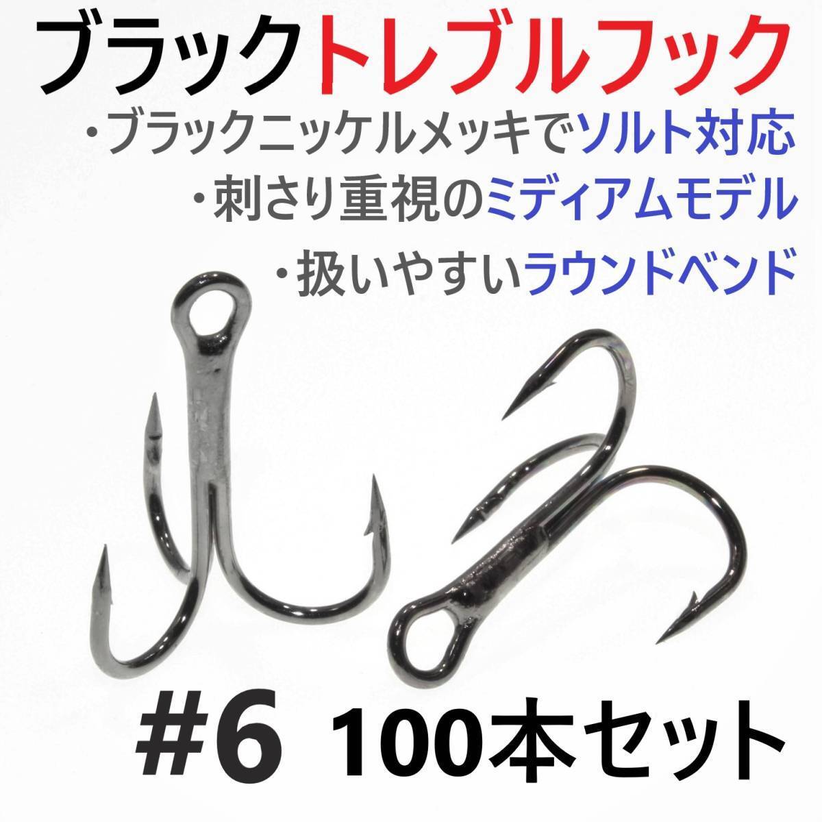 - 【送料180円】ブラックトレブルフック #6 100本セット トリプル ルアーフック ソルト対応 釣り針