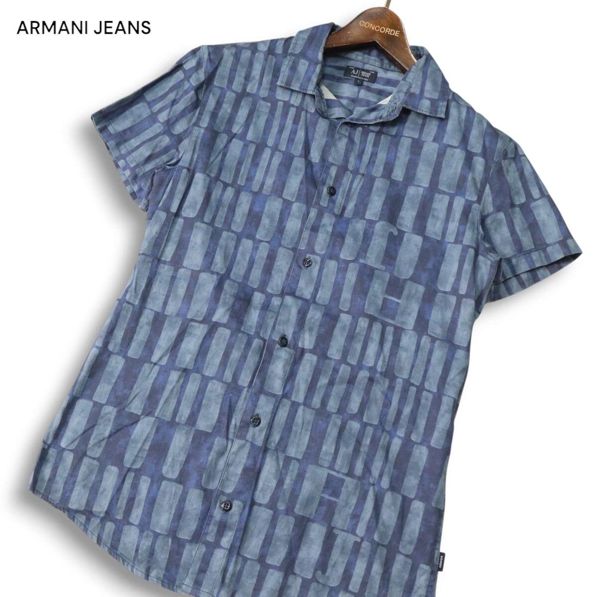 - ARMANI JEANS アルマーニ ジーンズ 春夏 幾何学 総柄★ 半袖 スリム シャツ Sz.S メンズ