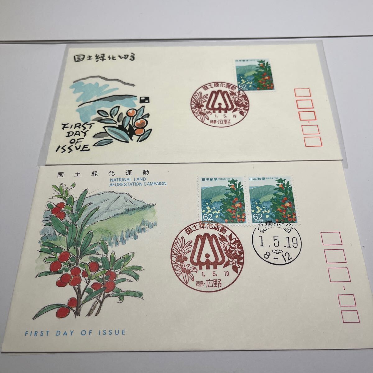 - 記念切手 2枚組 平成1年5.19初日カバー 国土緑化シリーズ!First day Cover 徳島広野印 【送料110円】『O3』