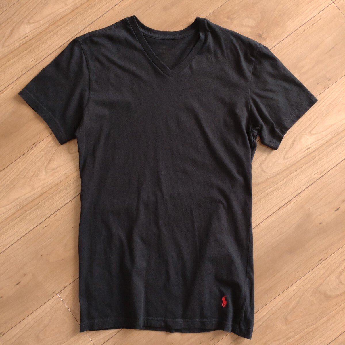 - POLO RALPH LAUREN 半袖TEE/Vネック/黒/古着/M【J877】