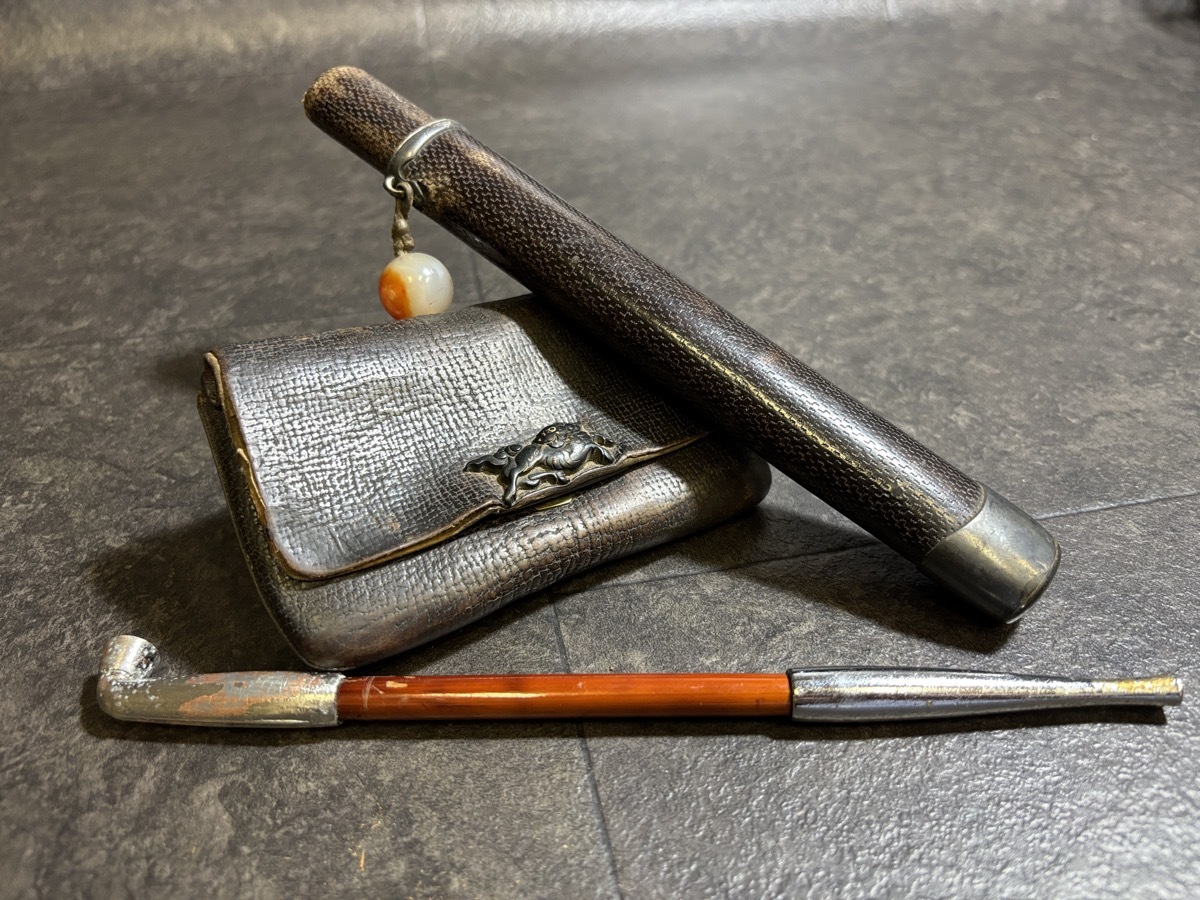 『時代物 煙草入れ 煙管入れ 金具 獅子 喫煙具 提げ物 緒締』