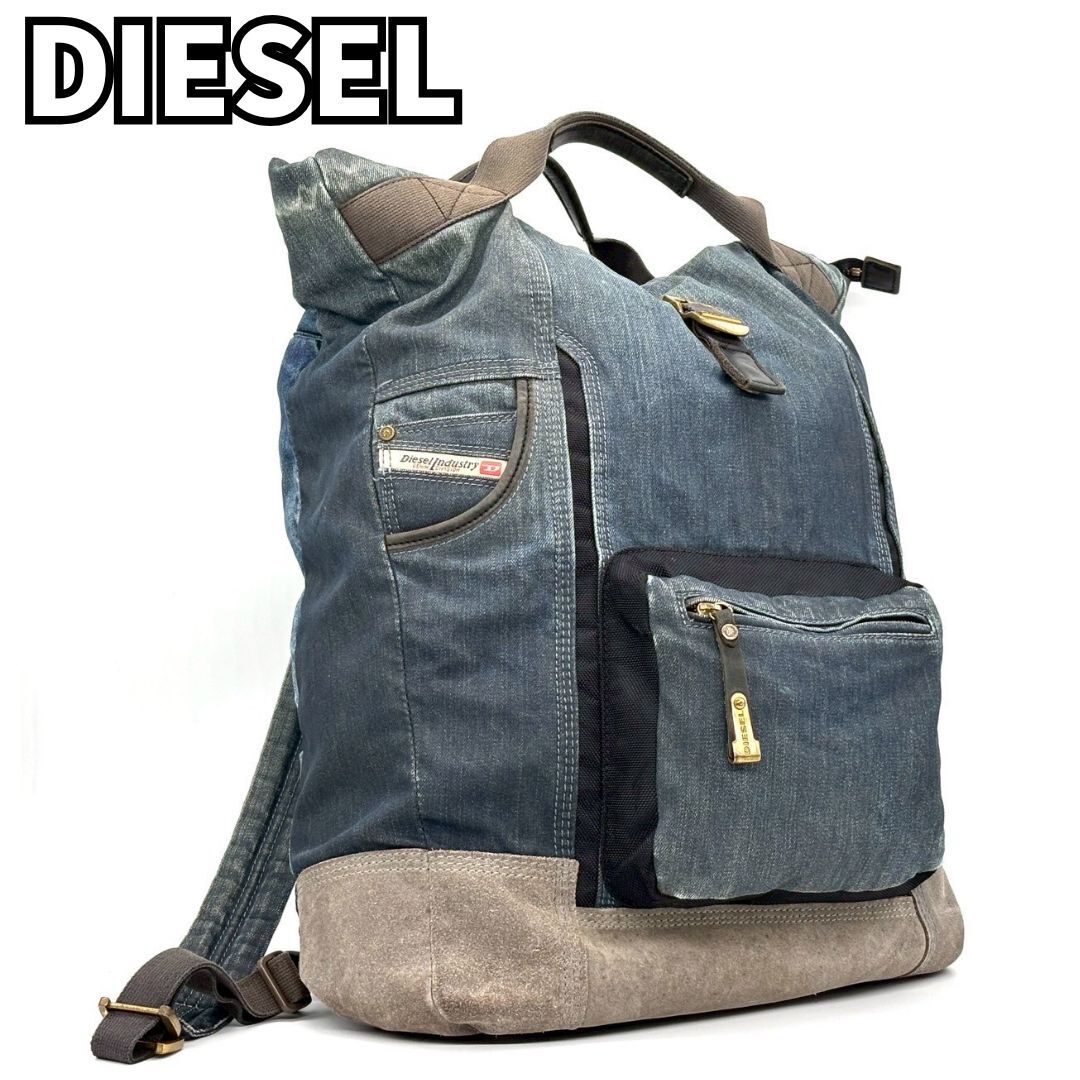 - 【ストリート映え抜群】DIESEL ディーゼル デニムリュック バックパック スエード切替 A4収納可 ノートPC収納 大容量 メンズ レディース 青