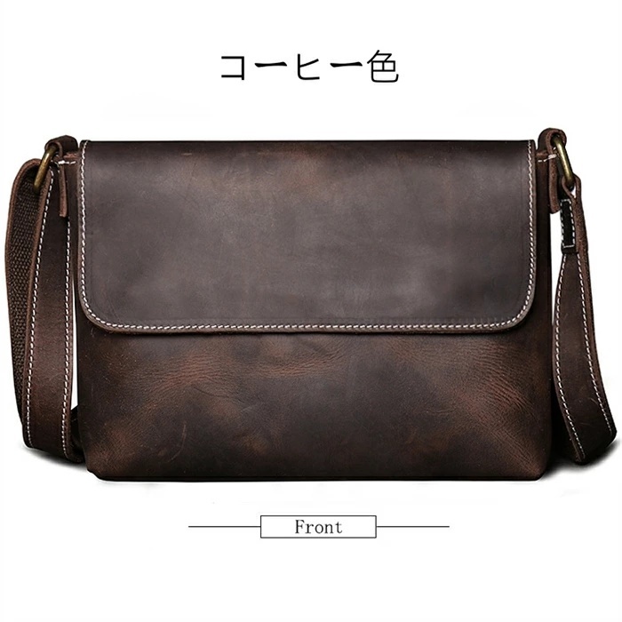 - 男女兼用 メンズ 牛革 ショルダーバッグ 斜めがけ メッセンジャーバッグ 本革 レザーバッグ おしゃれ かばん 大容量 bg0677 コーヒー色