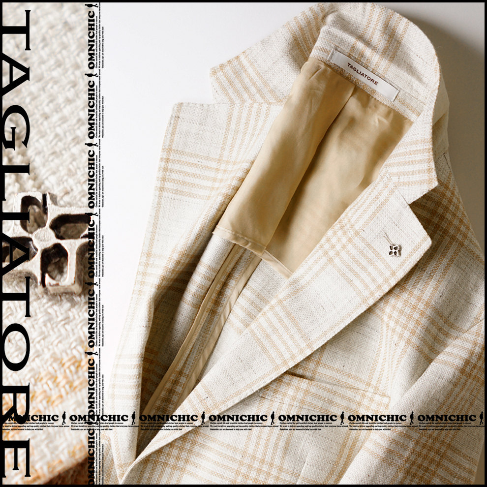> 人気のホップサック■新品13万/23春夏【TAGLIATORE】タリアトーレ色気漂う麻の風合い/極上リネンウールチェックテーラード2Bジャケット50