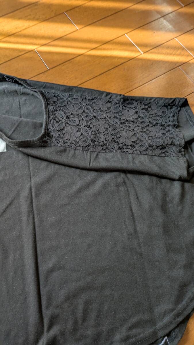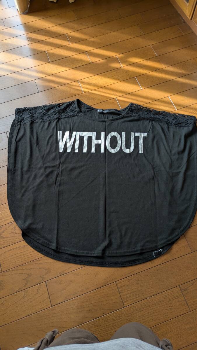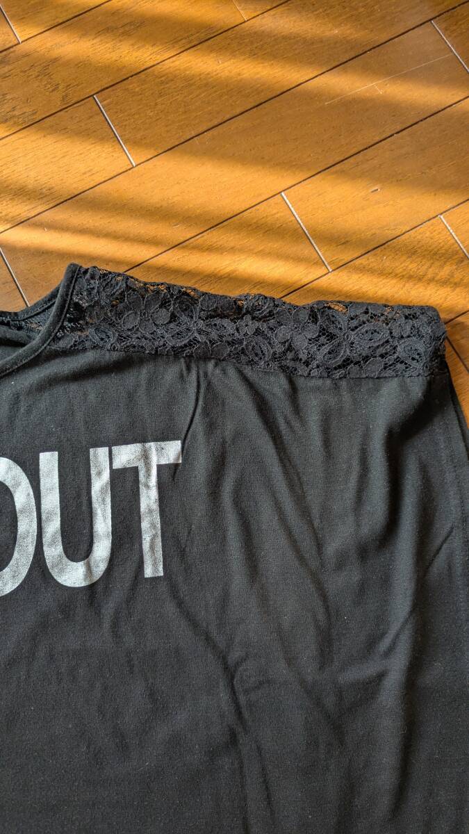 - ★ロゴTシャツ ドルマリンTシャツ★Lサイズ ざっく 肩部レース素材 体形カバー