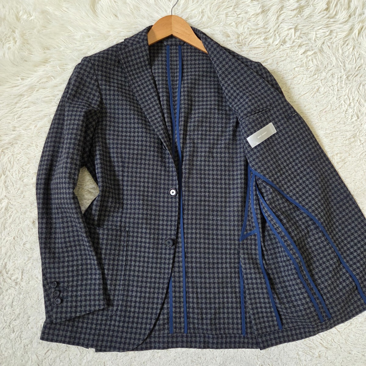 > 極美品 リングジャケット【Balloon 生地 シアサッカー 千鳥格子 46 M アンコンジャケット】RING JACKET テーラードジャケット サマーウール