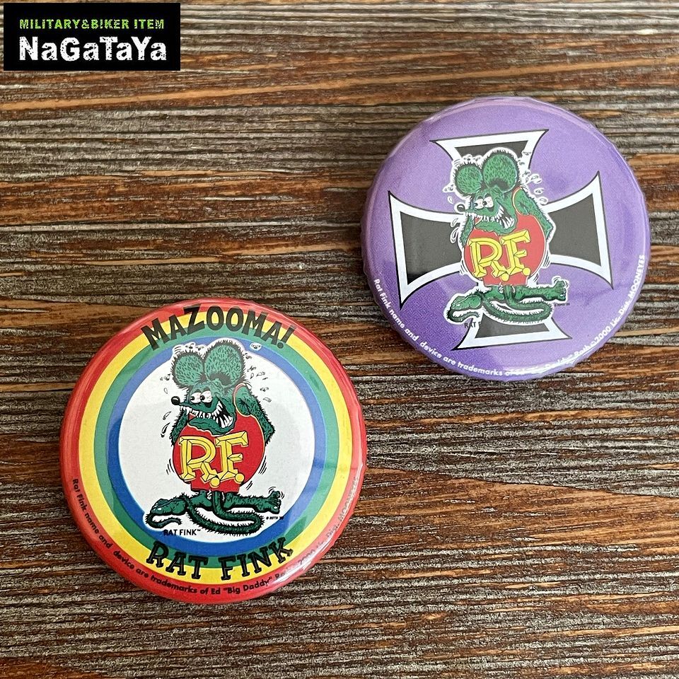 > RAT FINK ラットフィンク ブリキ缶バッジ 2個セット パープル+レインボー Ed"BigDaddy"Roth アメキャラ キャラクター