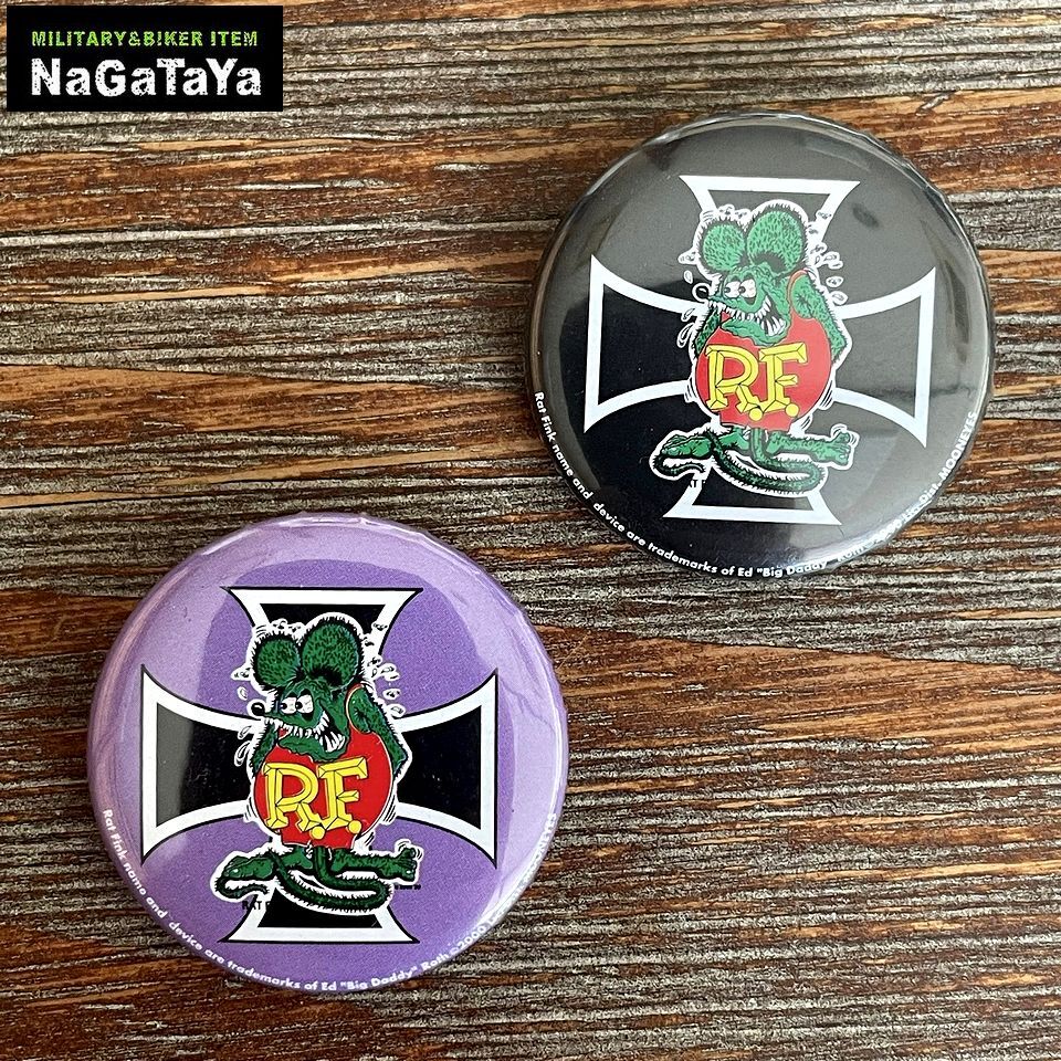 - RAT FINK ラットフィンク ブリキ缶バッジ 2個セット ブラック+パープル Ed"BigDaddy"Roth アメキャラ キャラクター