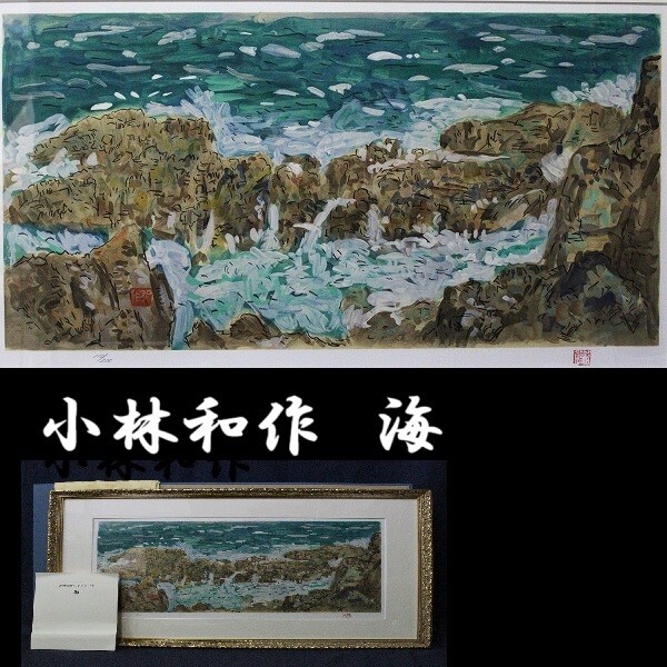 - 【未使用】 小林和作 「海」 リトグラフ 印章あり 限定175部 黄袋・タトウ箱・保証書付 D972