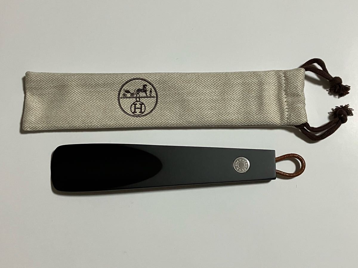 - 未使用 HERMES セリエ 靴べら シューホーン ウッド レザー 保存袋 エルメス 靴ベラ ショート