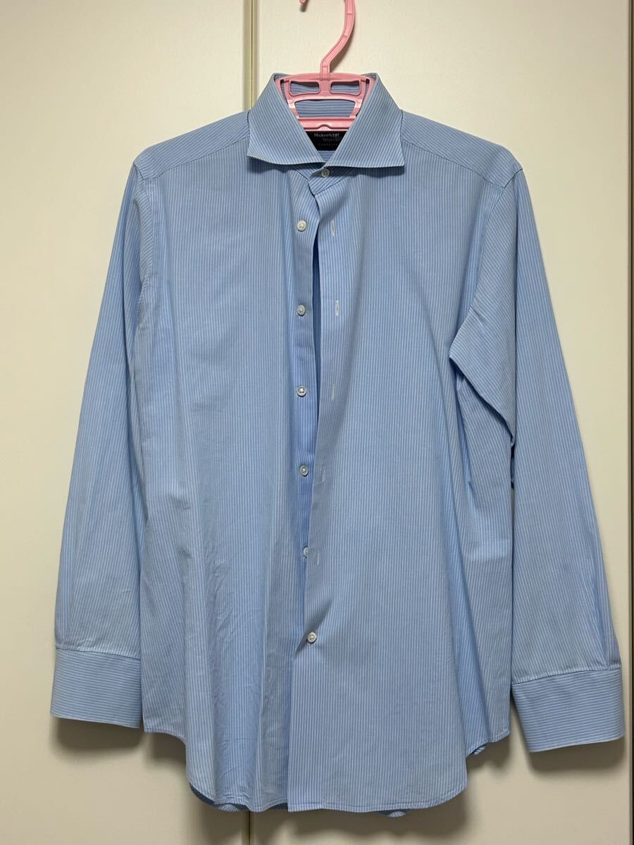 - 鎌倉シャツ 長袖ワイシャツ ストライプ ブルー顔 スリムフィット