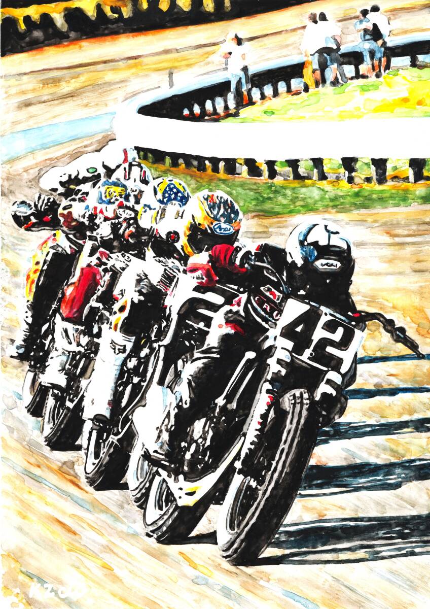 - 原画です。AMA ダートトラックレース 水彩画 バイクイラスト ハーレー ダートラ