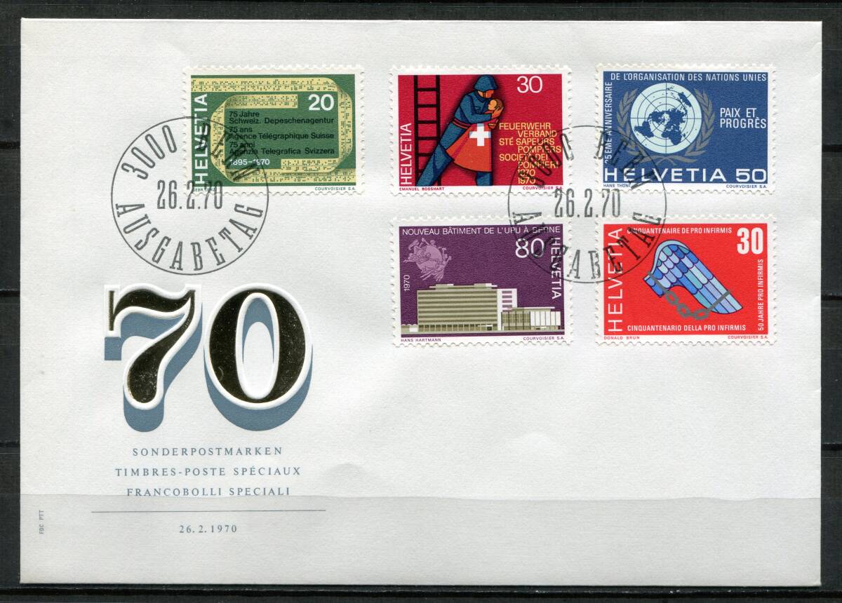 - スイス 1970年 国連 UPU 消防 5種完 FDC 初日カバー z8390