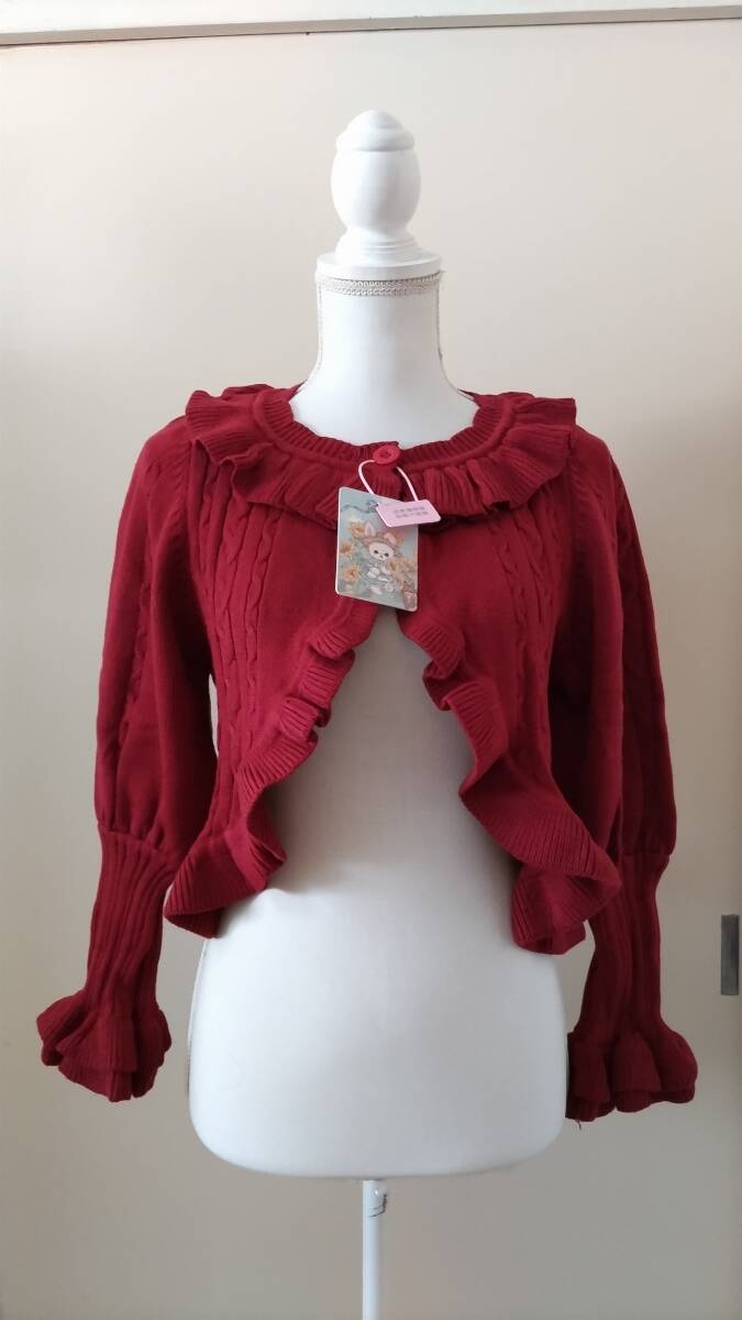 - No.2767_海外ロリィタ_未使用赤厚手フリルロリィタカーディガン