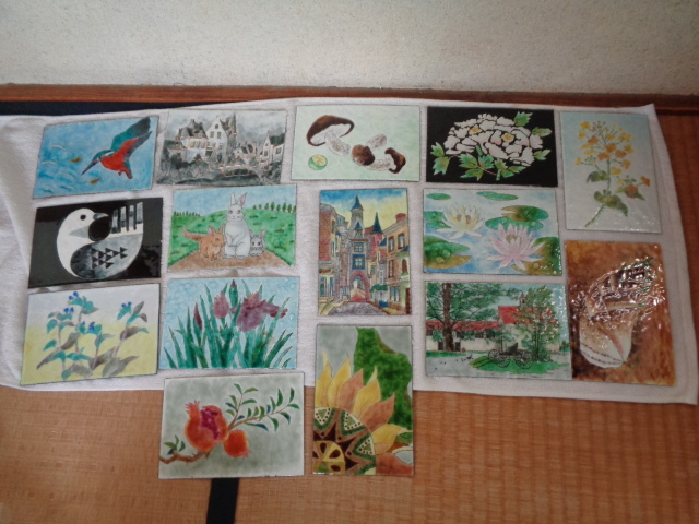 - スチールプレート アート 15枚まとめて/鉄板アート ハガキサイズ/鉄板絵画-スチール板絵画/作者不詳-ハンドメイド?/未使用美品-長期保管品