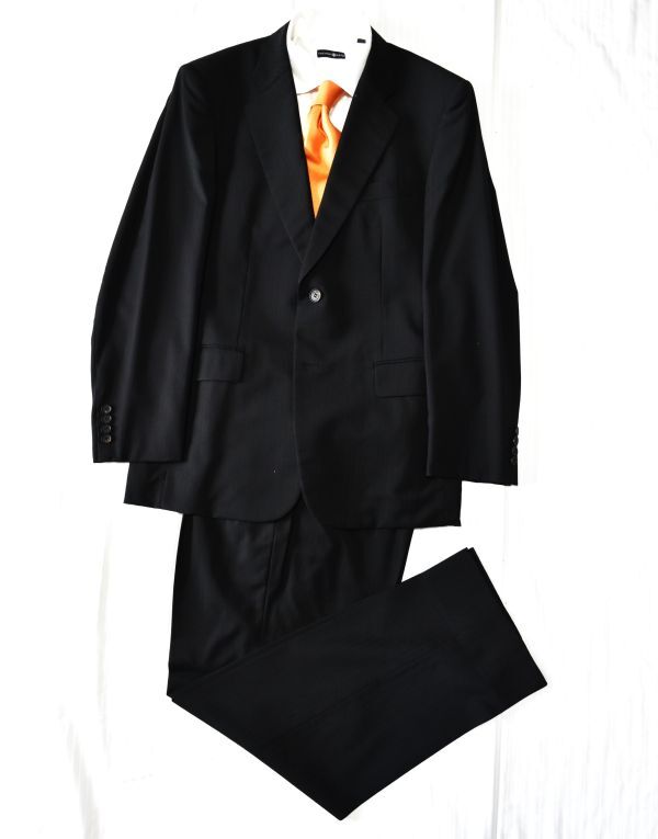 - ★超美品★ゼニア★Ermenegildo Zegna★ブラック黒シャドーストライプロゴ入釦総ロゴ裏地#高級感ある2釦スーツ#春夏4850L/LLオールシーズン