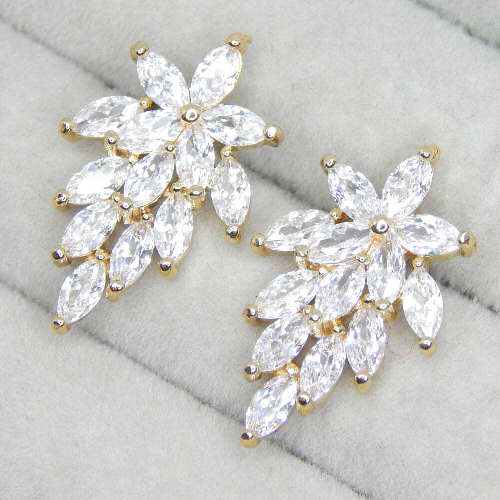 > 新品★ブーケ 13連CZホワイトダイヤモンドピアス ジルコニア シルバー925 Gold Plated レディースアクセサリー 限定 イヤリング化可