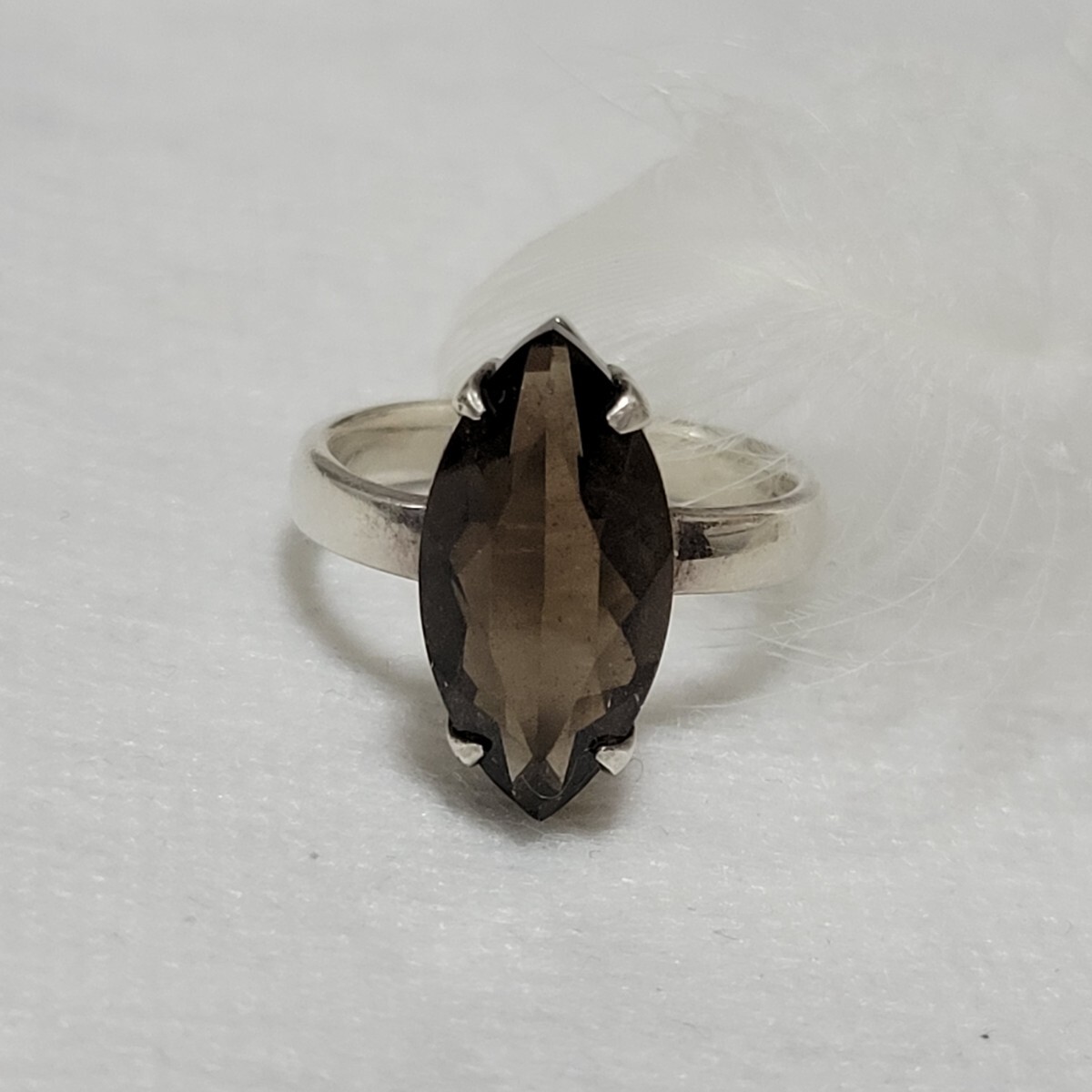 - image スモーキークォーツシルバーリング 9号 煙水晶 Silver925 SV925 マーキスカット 指輪
