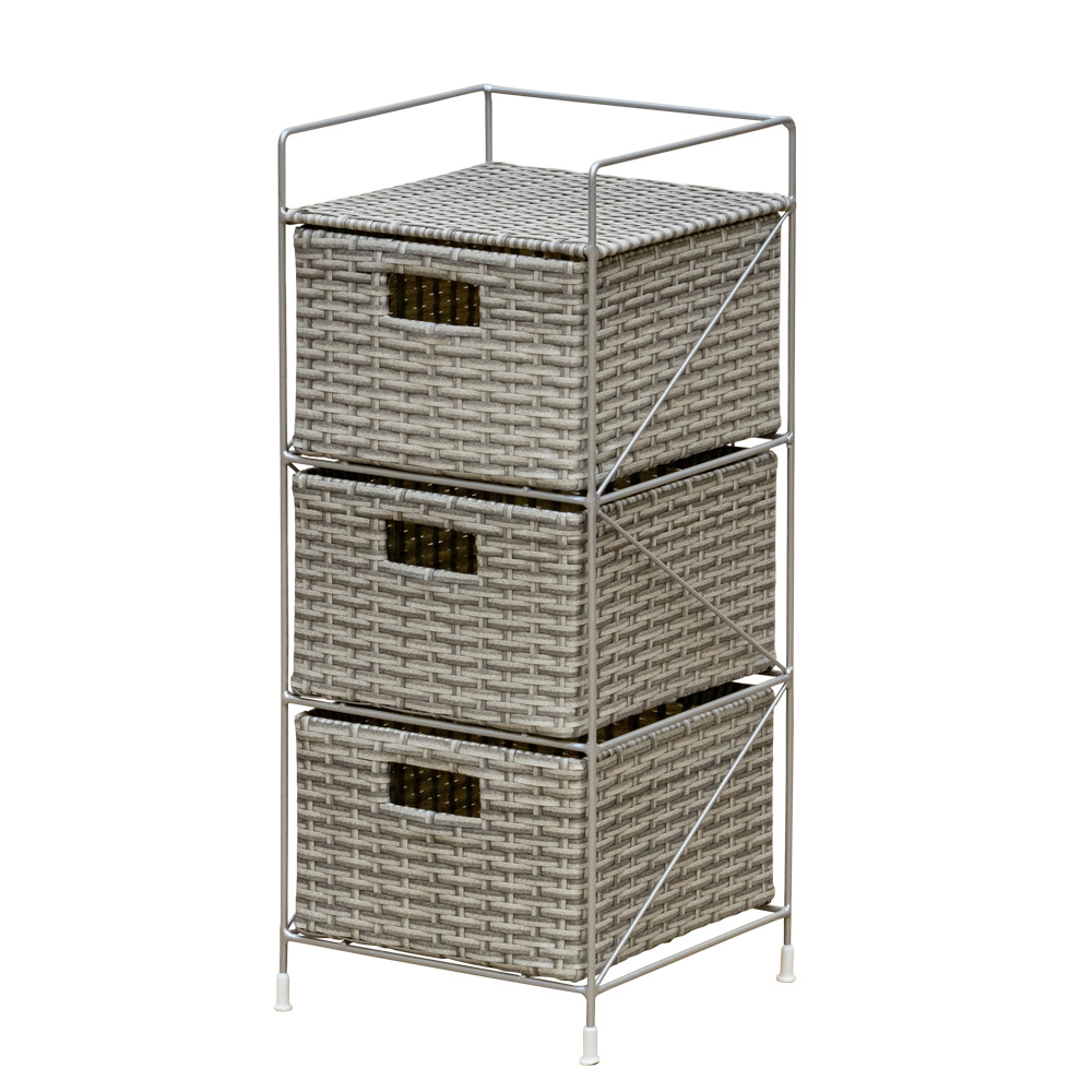 - 引き出し 3段 チェスト サニタリー収納 ラック シェルフ 幅25.5cm ラタン風 ランドリー収納 TME-02 グレー(GY)