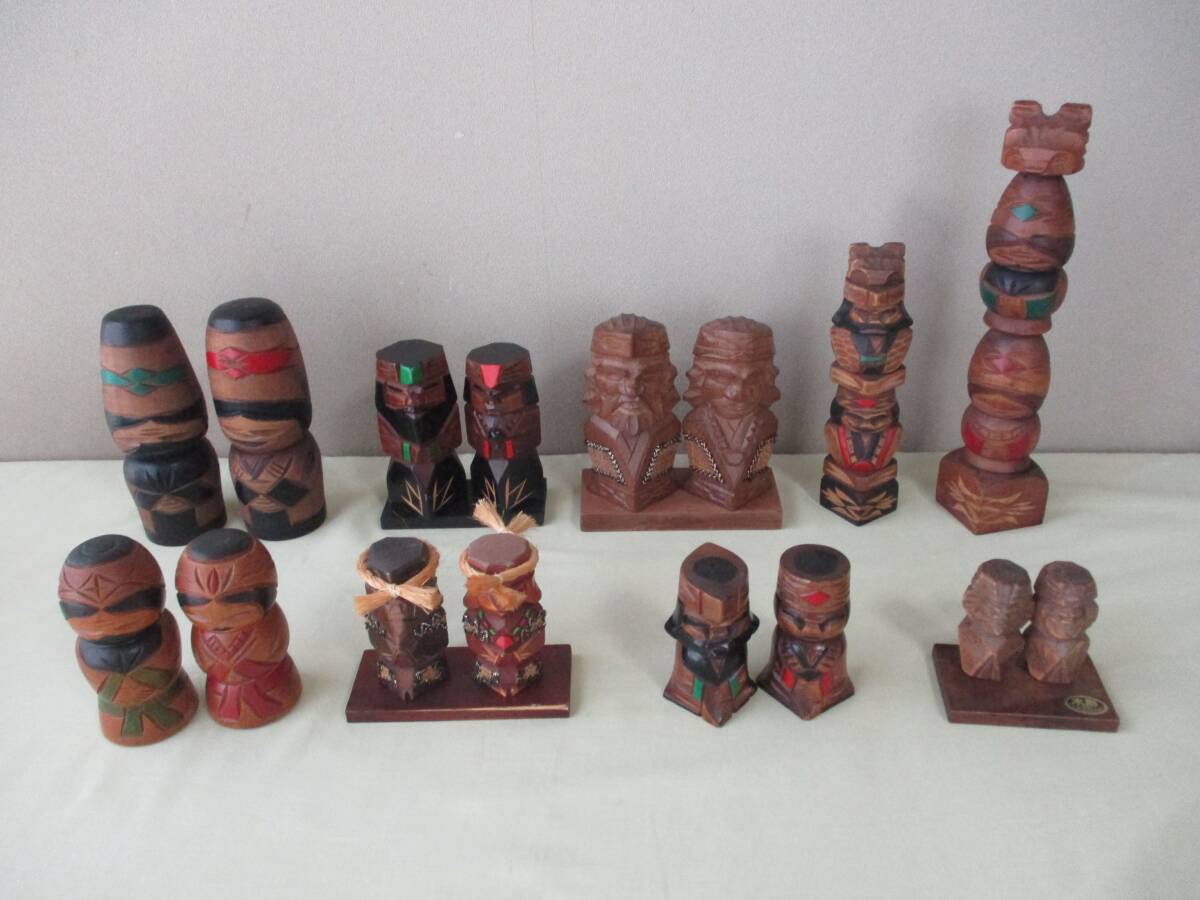 - ニポポ人形(夫婦7組セット&トーテムポール2個): 木製・木彫り・アイヌ・北海道・民芸品・土産品・インテリア・置物