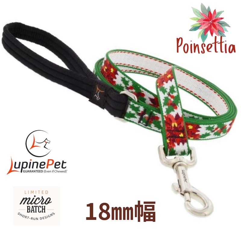 > 180cmリード ポインセチア柄18mm幅 LUPINE ルパイン パッド付き アメリカ製 軽量・丈夫 Poinsettia 犬用