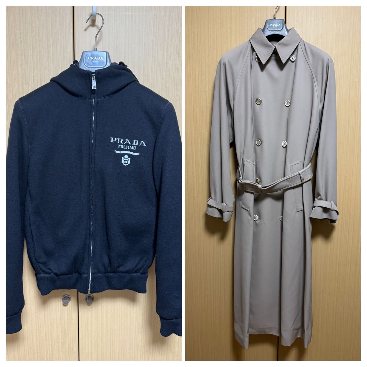 - PRADA ウールトレンチコート+カシミアダウンジャケット 48 豪華アウター2点セット+おまけのカシミアカーディガン プラダ 国内正規品