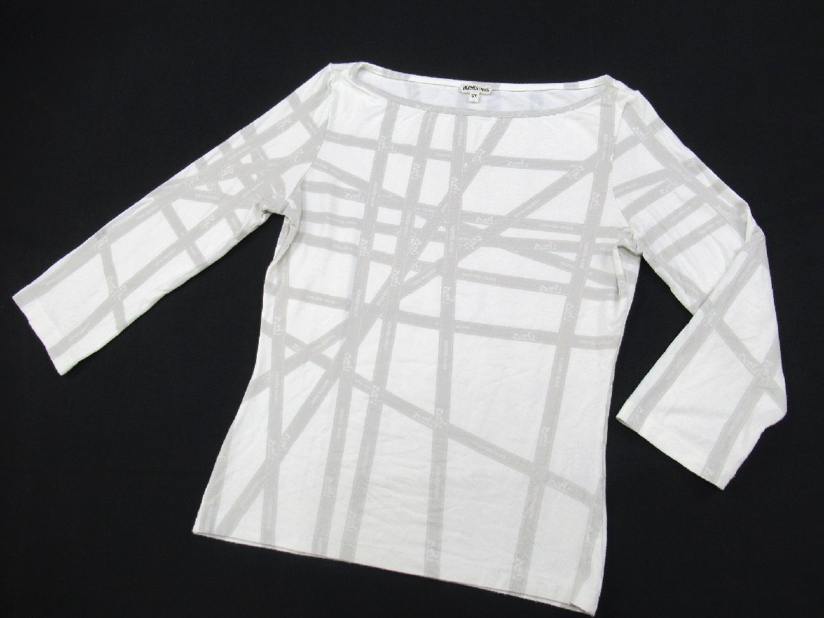 - ☆【B送900円】1969 HERMES エルメス マルジェラ期 リボンカットソー ボルデュック 7分袖 白×グレー イタリア製 レーヨン混 SM