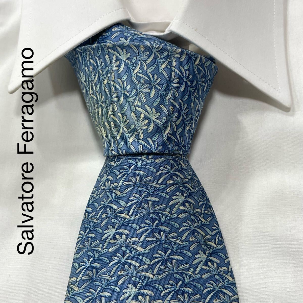 - Salvatore Ferragamo サルヴァトーレフェラガモ パターン柄 シルク ネクタイ イタリア製 ブルー ホワイト TG2597
