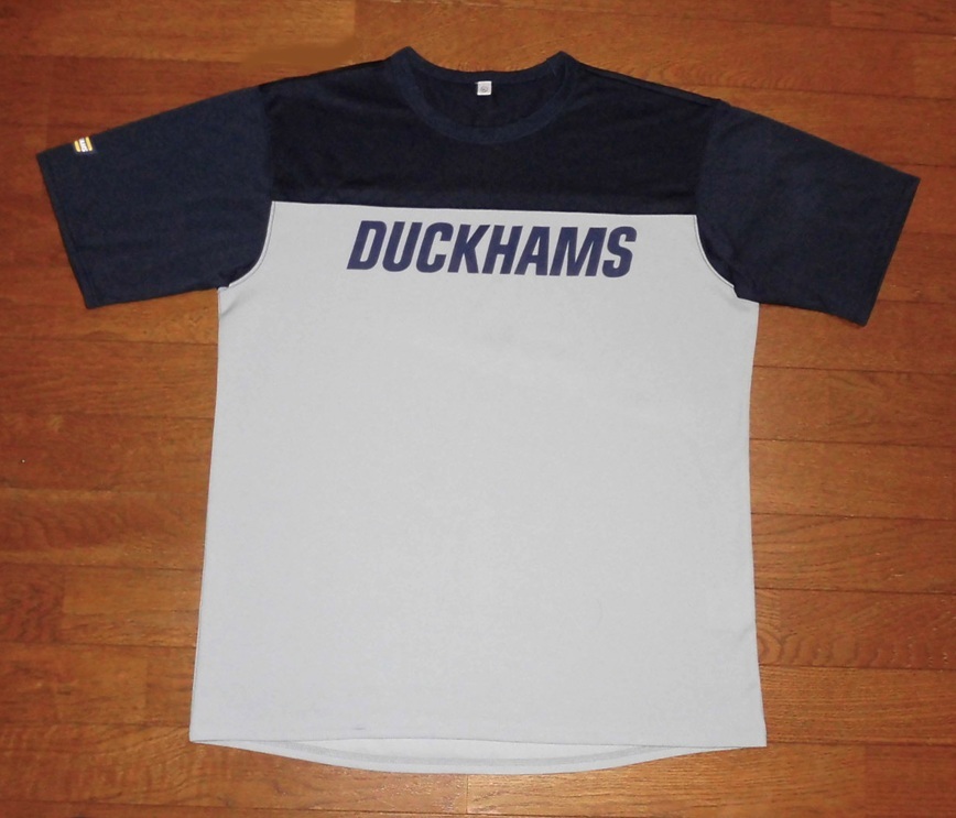 > DUCKHAMS OIL ダッカムス オイル Tシャツ 半袖 ドライ ユニクロ NVY-GRY XL 使用少 美品/カストロールAgipアジップDUNLOPダンロップ