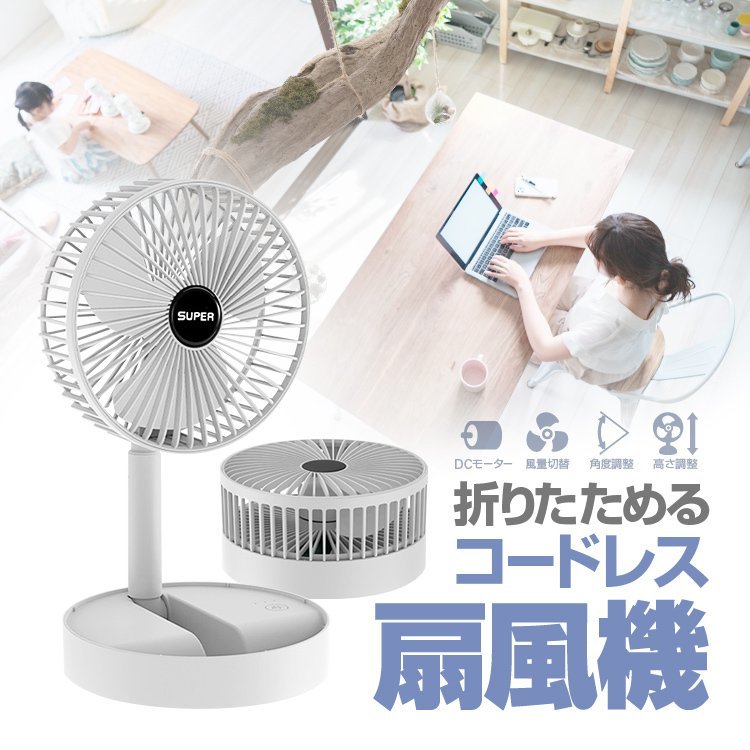 - 扇風機 折りたたみ 充電式 コードレス ファン DCモーター 風量3段階 角度調整垂直180度 卓上 自宅 仕事場 車内 LP-UFAN2021V2