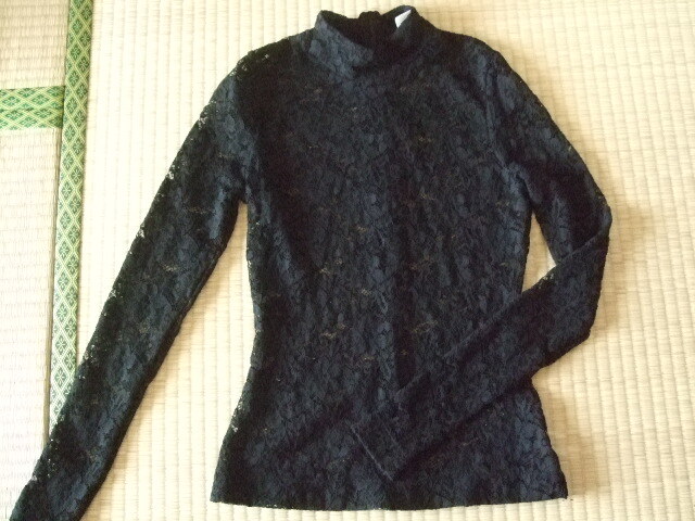 - H&M ハイネック花柄レースカットソー 黒 XS