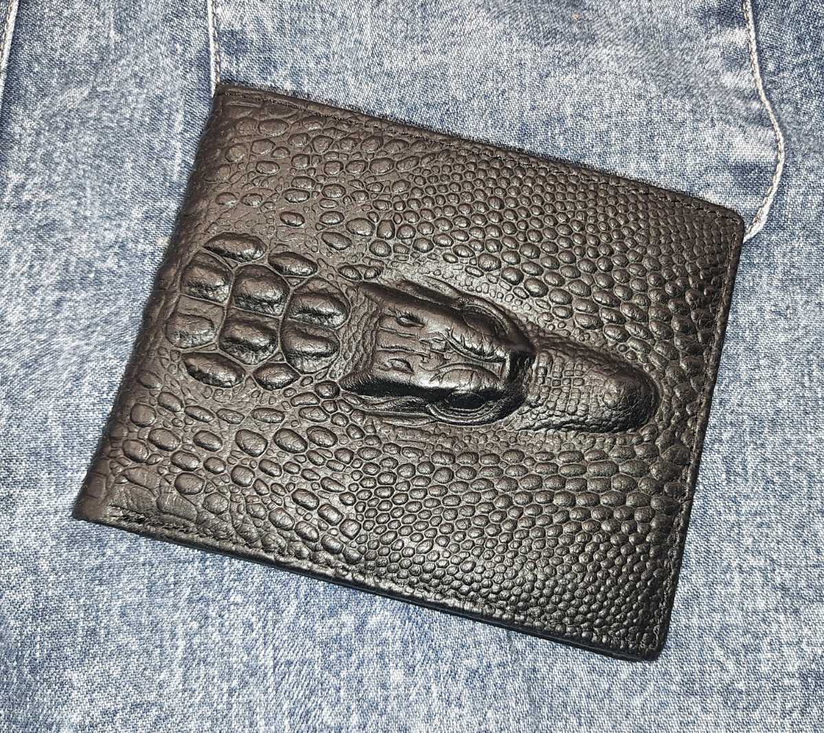 > ◆【格安・即決¥830円送料無料【高品質・表も裏も皮革製】二つ折れ財布(クロコ風型押し・薄型軽量・シャツポケット可・高品質◆